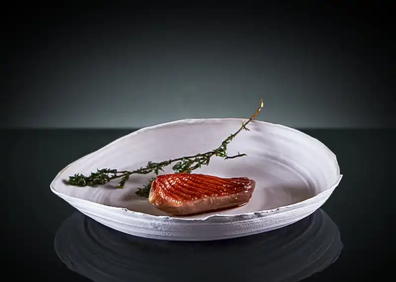 Schon der erste Anblick verheißt Zauberhaftes. Die meisterhaft vorgegarte Entenbrust "The Duke Filet" zeigt sich von ihrer exquisitesten Seite. Die gleichmäßig goldbraun angebratene knusprige Haut auf der Oberseite des Edelstücks verheißt paradiesische Geschmackserlebnisse.