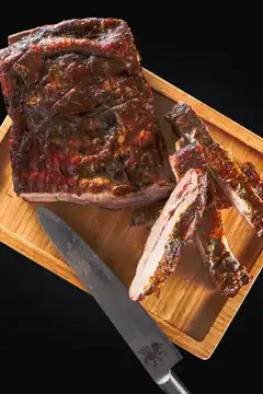 Schweinefleisch-Röstaromen, begleitet von kräutrigen Tönen, erobern den Geruchssinn im Sturm. Und dann folgt die Liebe auf den ersten Biss: Zart, saftig, kurzfaserig, mit einem sanften Knorpel und butterweichem Bindegewebe - so begegnet einem die "Rocco Rib". Der spezielle St. Louis Cut von der Bauchrippe überzeugt mit extra-hoher saftiger Fleischauflage.