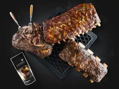 Beef short ribs, pulled pork & spare ribs refined & pre-cooked in the St. Louis Cut