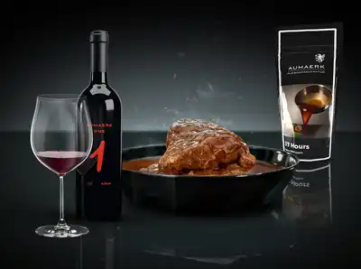 2 x beef cheeks "Imperial Cheek" with demi-glace sauce "37 hours" & AUMAERK red wine "One"