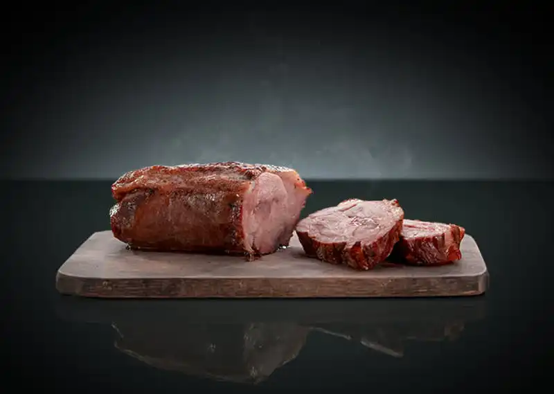Das Edelstück vom Kalb mit dem besonderen Schmelzfaktor. Makellos zugeschnitten mit einem sanften Rosa im Anschnitt lässt der vorgegarte Kalbsbraten vom Schulterspitz jedem das Wasser im Mund zusammenlaufen. Der erste Biss offenbart eine unvergleichlich saftige, zart-weiche Konsistenz.