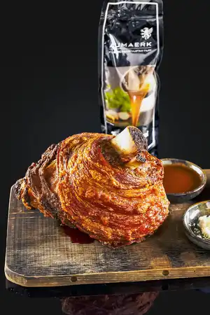 Kaufen Sie Ihre Schweinshaxe perfekt vorgegart nach der weltweit einzigartigen AUMAERK-Methode: Nur durch die patentierte Veredelung wird aus dem hinteren Bein vom Schwein die einzig wahre "Crack Leg".