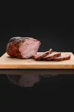 Der fein marmorierte Schweinehals wird für den „Noble Roast mini“ speziell zugeschnitten und mit hochwertigem Salz und natürlichen Gewürzen – grammgenau abgestimmt und liebevoll von Hand einmassiert – veredelt. Schonend vorgegart nach unserem einzigartigen, patentierten Garverfahren wird die außergewöhnliche Saftigkeit und Zartheit, sowie das wunderbare Aroma des Schweinsbratens Ihre höchsten Erwartungen noch übertreffen.