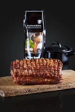 Der exquisit herzhafte unter den Schweinsbraten! Vorgegart und veredelt nach der patentierten AUMAERK-Methode wird das wunderbare Stück vom Schweinebauch zum himmlischen Vergnügen. Die Schwarte einfach schröpfen und salzen - den Rest erledigt die Hitze von Ofen, Grill oder Airfryer. Schon der erste Anblick ist großartig: Goldbraun strahlt einen die Kruste an, man erkennt den unwiderstehlichen Knusperfaktor sofort.