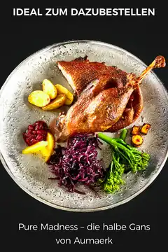 Gänsesaison bei AUMAERK: Perfekt vorgegarte Gänsespezialitäten ab Oktober bestellen! Lieferung zum Wunschtermin per 24 h Versand