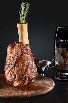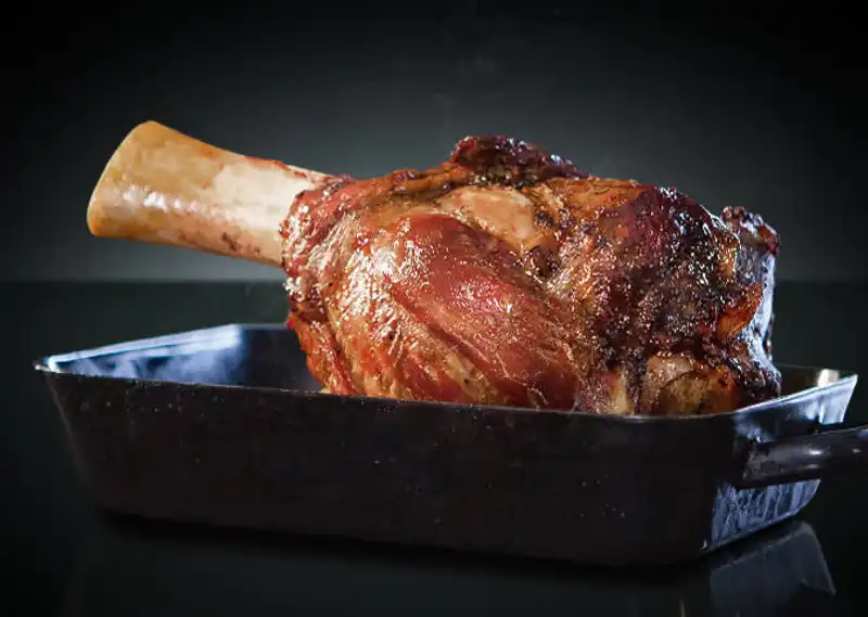 Bringen Sie Ihre Gäste zum Staunen! Servieren Sie die „High Heel“ dekorativ im Ganzen und tranchieren Sie das Fleisch ganz einfach vor Ihren Gästen am Tisch. „Schon allein den Knochen rauszudrehen, macht Spaß“, schwärmen AUMAERK Kunden von der beeindruckenden Haxe.