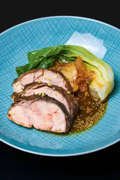 Der erste Biss übertrifft die Erwartungen noch bei weitem: Zart, saftig, flaumig, die dezent knusprige Haut eine Ode an den exzellenten Geschmack. Untermalt von einem vornehmen schwarzen Pfefferl und feinen Kräuternuancen schmilzt das Kalbfleisch mit leichten Butteranklängen am Gaumen.