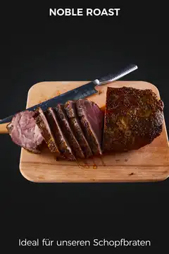 Bei unserem "Juice Royal" handelt es sich um einen perfekt abgestimmten Bratenjus, der hervorragend mit unserem Sortiment vom Schwein harmoniert. Egal, ob zum Schweinebraten mit Kruste "Pork Royal", zum saftigen Schweinenackenbraten "Noble Roast" oder zur knusprigen Schweinshaxe "Crack Leg" – die von Spitzenköchen abgeschmeckte Sauce rundet jedes Fleisch-Gericht perfekt ab.