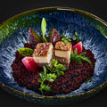 Begleitend vitalisieren Anklänge von Salz, Kümmel und Pfeffer mit einem Hauch von Knoblauch den Gaumen. Das Fleisch tänzelt spielerisch saftig und zart, das Edel-Fett geleeartig lieblich. Diese Kombination ist eine Inspiration für jeden Feinschmecker. Die feinen, kurzen Fasern machen das Geschmackserlebnis erst richtig zum Wohlvergnügen.