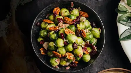Auch Gemüse-Beilagen und frische Salate der Saison sind eine gute Wahl. Karotten, Rosenkohl und Kürbis harmonieren wunderbar zu feinen Geschmack einer gebratenen Kalbsstelze.