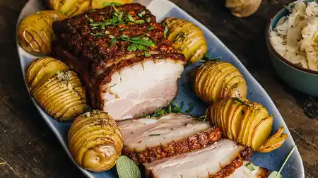 Die ewigen Braten-Klassiker– ein knuspriger Krustenbraten, ein mürber Schopfbraten vom Schwein, ein saftiger Rinderbraten oder ein zarter Kalbsrollbraten – sind genau das Richtige, wenn sich zu Silvester die große Runde versammelt.