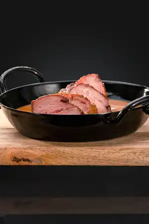 Die zarteste Backe seit Kalbfleisch genossen wird. Ein lieblich-anregender Duft von Schmorbraten umschmeichelt die Nase und lässt einem den Mund wässrig werden. Zartrosa im Anschnitt ist der erste Biss in das vorgegarte Kalbsbackerl unglaublich gaumenschmeichelnd.