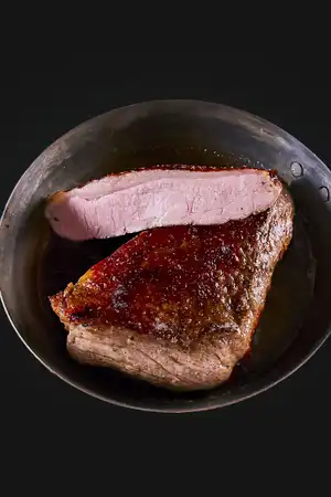 Schieben Sie den Tafelspitz im Ganzen bei 150°C Heißluft in den Ofen und bereiten Sie laut unserer Anleitung binnen 35 Minuten einen wunderbar zarten und saftigen Kalbsbraten zu (funktioniert auch am Grill 160°C/ca. 40 Minuten).