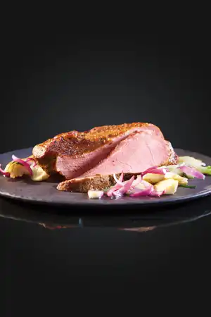 Auch wenn Sie Tafelspitz von Kalb und Rind bisher nur als klassisches Siedefleisch kannten: Bewirten Sie Ihre Gäste je nach Anlass mit modernen Interpretationen und überraschen Sie sie mit immer wieder neuen Kreationen. Durch seinen milden Eigengeschmack harmoniert der Kalbstafelspitz ausgezeichnet mit den verschiedensten Aromen. Das Teilstück wird aufgrund seiner Zartheit und Bekömmlichkeit besonders von ernährungsbewussten Feinschmeckern hochgeschätzt.