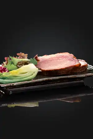 Das Edelstück vom Kalb mit dem besonderen Schmelzfaktor. Makellos zugeschnitten mit einem sanften Rosa im Anschnitt lässt der vorgegarte Kalbsbraten vom Schulterspitz jedem das Wasser im Mund zusammenlaufen. Der erste Biss offenbart eine unvergleichlich saftige, zart-weiche Konsistenz.