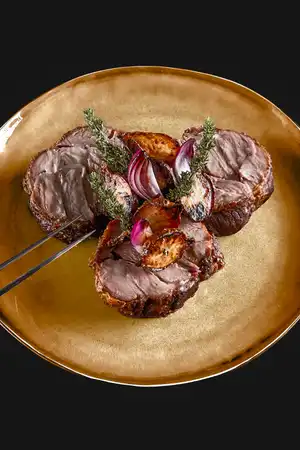 Das Fleisch mit seinen langen Fasern und seinen dezenten Fetteinschlüssen gleitet richtiggehend auf der der Zunge entlang und schmiegt sich mit seinem elastisch-weichen Biss an den Gaumen. Im angenehmen Kontrast zum geschmeidigen Fleisch steht die knackig-knusprige Kruste, die dem Mundgefühl einen zusätzlichen Kick verleiht. Die Geschmacksknospen werden von prickelnden Kräuternoten und dezenten Pfefferanflügen ergriffen. Die leichte Schärfe im Abgang wirkt ausgesprochen belebend und vollendet das Geschmacksfeuerwerk.