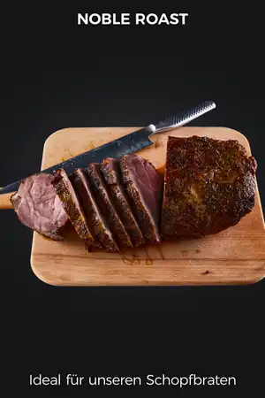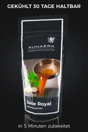 Bei unserem "Juice Royal" handelt es sich um einen perfekt abgestimmten Bratensaft, der hervorragend mit unserem Sortiment vom Schwein harmoniert. Egal, ob zum Schweinsbraten mit Kruste "Pork Royal", zum saftigen Schopfbraten "Noble Roast" oder zur knusprigen Stelze "Crack Leg" – der von Spitzenköchen abgeschmeckte Saft rundet jedes Fleisch-Gericht perfekt ab.