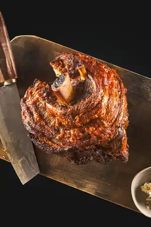 Die hintere Stelze vom Schwein ist besonders fleischig: Ein Stück „Crack Leg“ (Mindestgewicht 1.200g Fleisch mit Knochen) ergibt ein köstliches Essen für 3-5 Gäste, je nach Beilagenwahl.